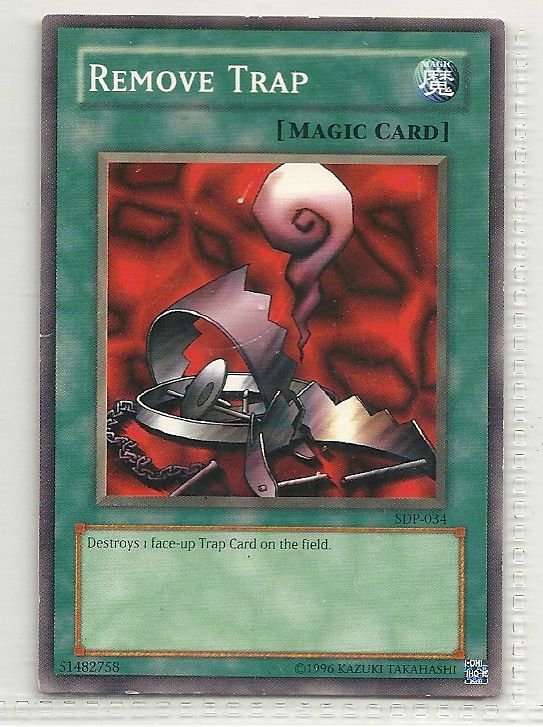 more Great cards @ www.everythingcollectibles.biz For Sale is a YuGiOh Pegasus Starter Deck Single Card Remove Trap SDP-034. all single cards are shipped in Penny Sleeves and top loaders. all orders ship with delivery confirmation as