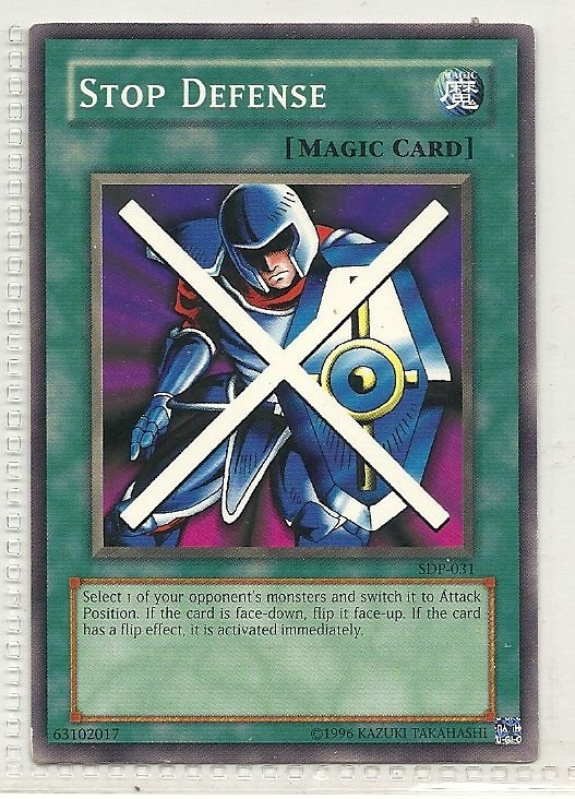 more Great cards @ www.everythingcollectibles.biz For Sale is a YuGiOh Pegasus Starter Deck Single Card Stop Defense SDP-031. all single cards are shipped in Penny Sleeves and top loaders. all orders ship with delivery confirmation as