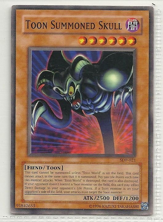 more Great cards @ www.everythingcollectibles.biz For Sale is a YuGiOh Pegasus Starter Deck Single Card Toon Summoned Skull SDP-021. all single cards are shipped in Penny Sleeves and top loaders. all orders ship with delivery confirmation as