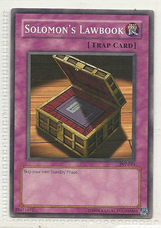 more Great cards @ www.everythingcollectibles.biz For Sale is a YuGiOh Pharaoh's Servant Single Card Common PSV-013 Solomon's Lawbook. all single cards are shipped in Penny Sleeves and top loaders. all orders ship with delivery confirmation as