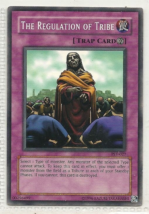 more Great cards @ www.everythingcollectibles.biz For Sale is a YuGiOh Pharaoh's Servant Single Card Common PSV-027 The Regulation of Tribe. all single cards are shipped in Penny Sleeves and top loaders. all orders ship with delivery confirmation as