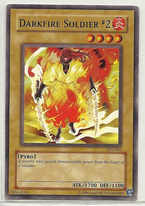 more Great cards @ www.everythingcollectibles.biz For Sale is a YuGiOh Pharaoh's Servant Single Card Common PSV-045 Darkfire Soldier #2. all single cards are shipped in Penny Sleeves and top loaders. all orders ship with delivery confirmation as