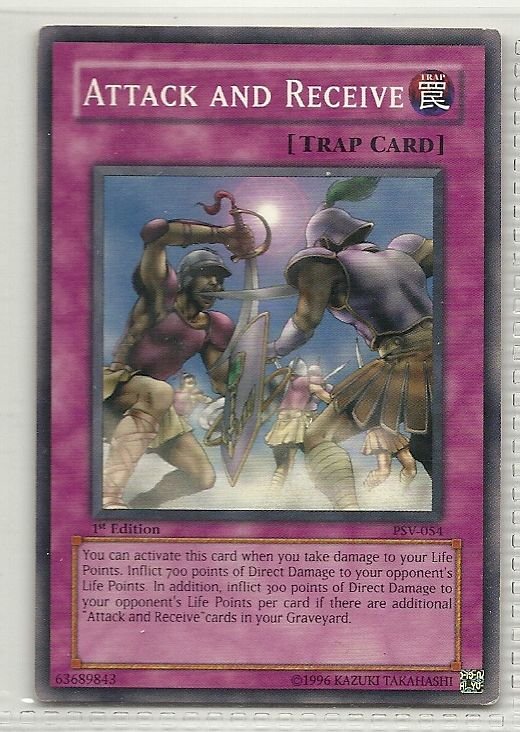 more Great cards @ www.everythingcollectibles.biz For Sale is a YuGiOh Pharaoh's Servant Single Card Common PSV-054 Attack and Receive. all single cards are shipped in Penny Sleeves and top loaders. all orders ship with delivery confirmation as