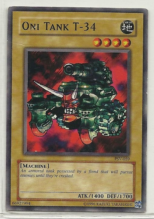 more Great cards @ www.everythingcollectibles.biz For Sale is a YuGiOh Pharaoh's Servant Single Card Common PSV-059 Oni Tank T-34. all single cards are shipped in Penny Sleeves and top loaders. all orders ship with delivery confirmation as
