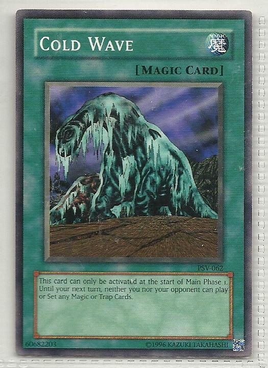 more Great cards @ www.everythingcollectibles.biz For Sale is a YuGiOh Pharaoh's Servant Single Card Common PSV-062 Cold Wave. all single cards are shipped in Penny Sleeves and top loaders. all orders ship with delivery confirmation as
