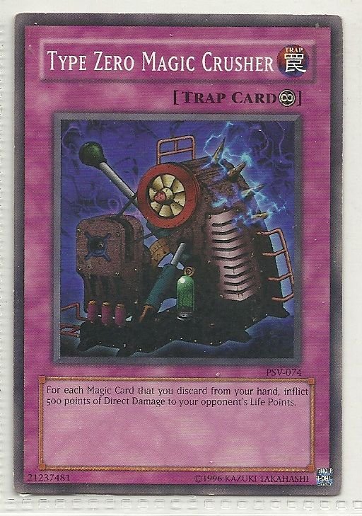 more Great cards @ www.everythingcollectibles.biz For Sale is a YuGiOh Pharaoh's Servant Single Card Common PSV-074 Type Zero Magic Crusher. all single cards are shipped in Penny Sleeves and top loaders. all orders ship with delivery confirmation as