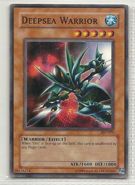 more Great cards @ www.everythingcollectibles.biz For Sale is a YuGiOh Pharaoh's Servant Single Card Common PSV-079 Deepsea Warrior. all single cards are shipped in Penny Sleeves and top loaders. all orders ship with delivery confirmation as