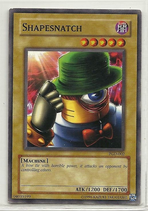 more Great cards @ www.everythingcollectibles.biz For Sale is a YuGiOh Pharaonic Guardian Single Card Common PGD-002 Shapesnatch. all single cards are shipped in Penny Sleeves and top loaders. all orders ship with delivery confirmation