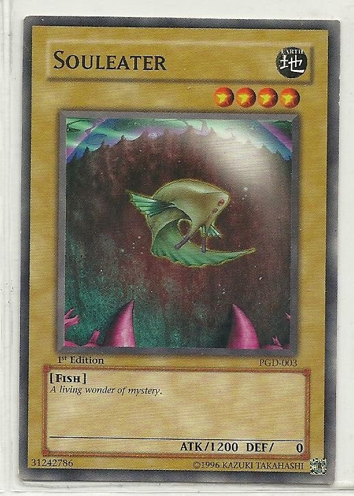 more Great cards @ www.everythingcollectibles.biz For Sale is a YuGiOh Pharaonic Guardian Single Card Common PGD-003 Souleater. all single cards are shipped in Penny Sleeves and top loaders. all orders ship with delivery confirmation