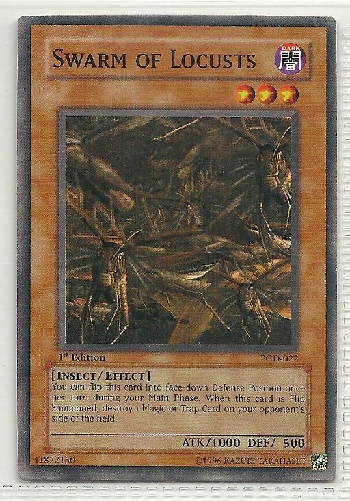 more Great cards @ www.everythingcollectibles.biz For Sale is a YuGiOh Pharaonic Guardian Single Card Common PGD-022 Swarm of Locusts. all single cards are shipped in Penny Sleeves and top loaders. all orders ship with delivery confirmation