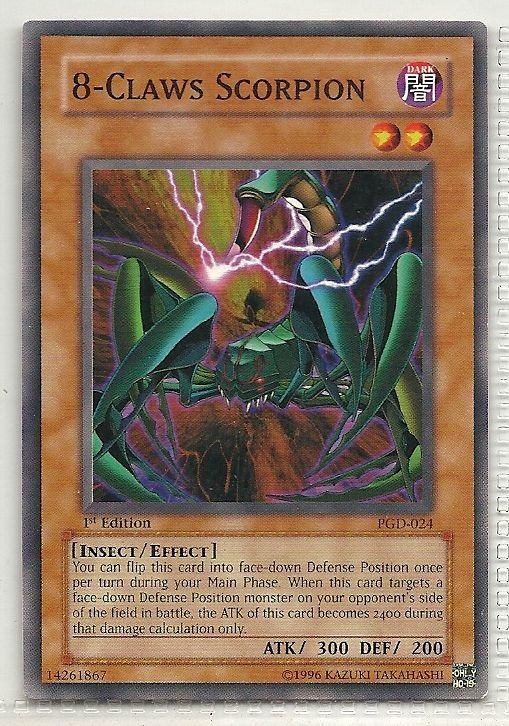 more Great cards @ www.everythingcollectibles.biz For Sale is a YuGiOh Pharaonic Guardian Single Card Common PGD-024 8-Claws Scorpion. all single cards are shipped in Penny Sleeves and top loaders. all orders ship with delivery confirmation