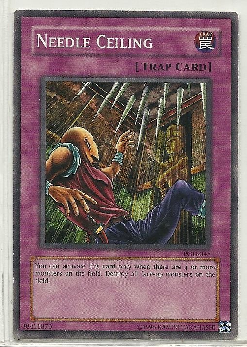 more Great cards @ www.everythingcollectibles.biz For Sale is a YuGiOh Pharaonic Guardian Single Card Common PGD-045 Needle Ceiling. all single cards are shipped in Penny Sleeves and top loaders. all orders ship with delivery confirmation