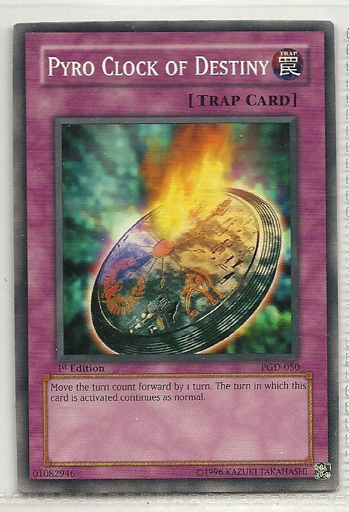 more Great cards @ www.everythingcollectibles.biz For Sale is a YuGiOh Pharaonic Guardian Single Card Common PGD-050 Pyro Clock of Destiny. all single cards are shipped in Penny Sleeves and top loaders. all orders ship with delivery confirmation