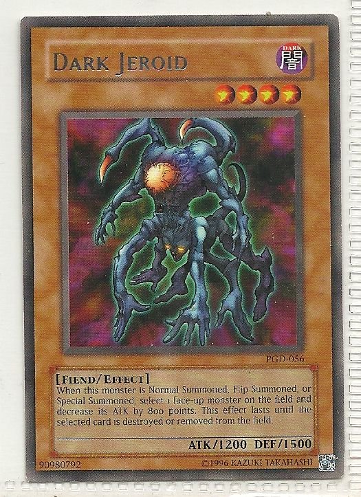 more Great cards @ www.everythingcollectibles.biz For Sale is a YuGiOh Pharaonic Guardian Single Card Dark Jeroid Rare PGD-056. all single cards are shipped in Penny Sleeves and top loaders. all orders ship with delivery confirmation
