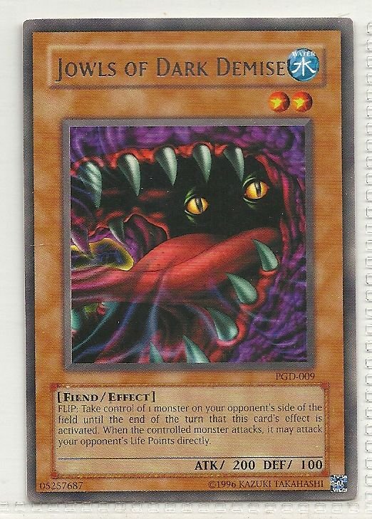 more Great cards @ www.everythingcollectibles.biz For Sale is a YuGiOh Pharaonic Guardian Single Card Rare PGD-009 Jowls of Dark Demise. all single cards are shipped in Penny Sleeves and top loaders. all orders ship with delivery confirmation