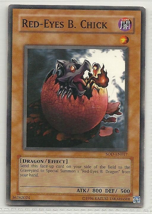 more Great cards @ www.everythingcollectibles.biz For Sale is a YuGiOh Soul of the Duelist Common Single Card SOD-EN017 Red-Eyes B. Chick. all single cards are shipped in Penny Sleeves and top loaders. all orders ship with delivery confirmation