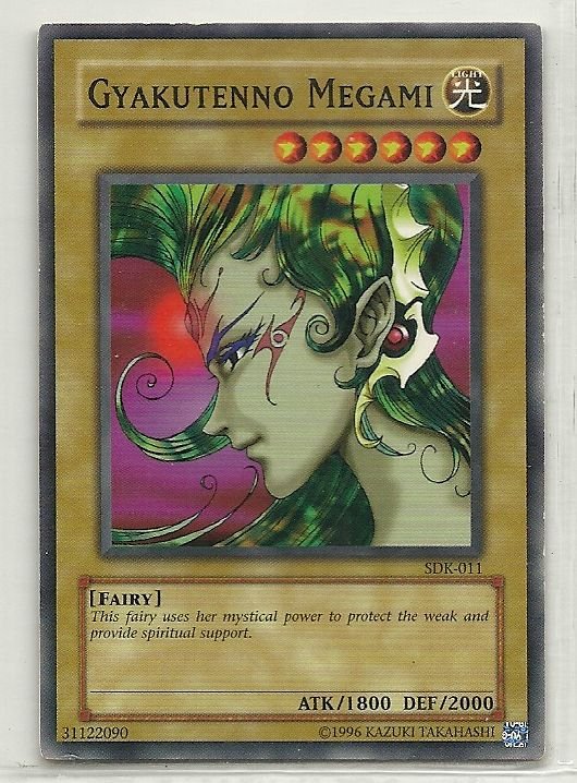 more Great cards @ www.everythingcollectibles.biz For Sale is a YuGiOh Starter Deck Kaiba Single Card Common SDK-011 Gyakutenno Megami. all single cards are shipped in Penny Sleeves and top loaders. all orders ship with delivery confirmation