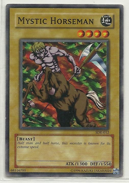 more Great cards @ www.everythingcollectibles.biz For Sale is a YuGiOh Starter Deck Kaiba Single Card Common SDK-012 Mystic Horseman. all single cards are shipped in Penny Sleeves and top loaders. all orders ship with delivery confirmation