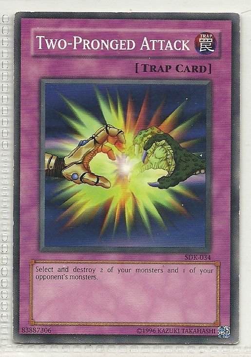 more Great cards @ www.everythingcollectibles.biz For Sale is a YuGiOh Starter Deck Kaiba Single Card Common SDK-034 Two-Pronged Attack. all single cards are shipped in Penny Sleeves and top loaders. all orders ship with delivery confirmation