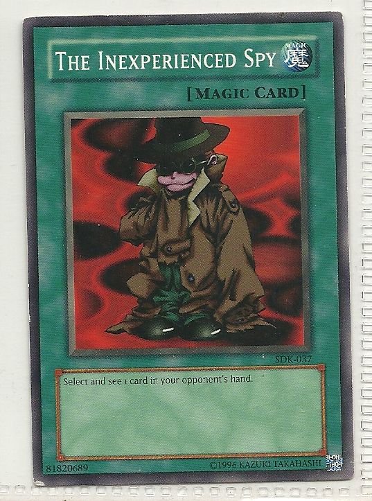 more Great cards @ www.everythingcollectibles.biz For Sale is a YuGiOh Starter Deck Kaiba Single Card Common SDK-037 The Inexperienced Spy. all single cards are shipped in Penny Sleeves and top loaders. all orders ship with delivery confirmation