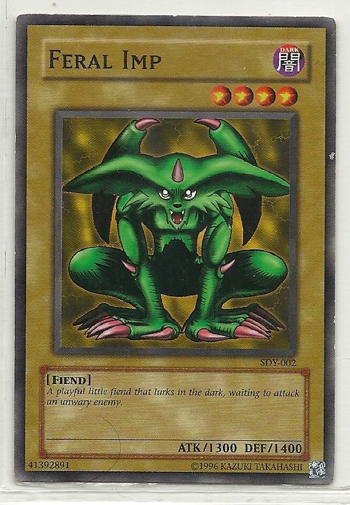 more Great cards @ www.everythingcollectibles.biz For Sale is a YuGiOh Starter Deck Yugi Single Card Common SDY-002 Feral Imp. all single cards are shipped in Penny Sleeves and top loaders. all orders ship with delivery confirmation