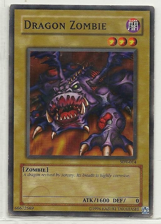 more Great cards @ www.everythingcollectibles.biz For Sale is a YuGiOh Starter Deck Yugi Single Card Common SDY-014 Dragon Zombie. all single cards are shipped in Penny Sleeves and top loaders. all orders ship with delivery confirmation