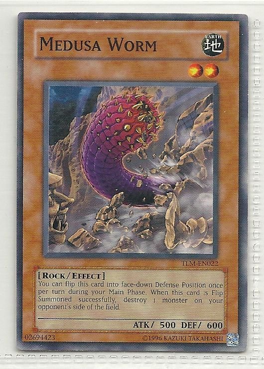 more Great cards @ www.everythingcollectibles.biz For Sale is a YuGiOh The Lost Millennium Single Card Common TLM-EN022 Medusa Worm. all single cards are shipped in Penny Sleeves and top loaders. all orders ship with delivery confirmation