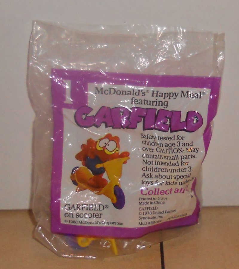 More great collectibles @ www.everything-collectibles.com 1988 McDonalds Garfield On Scooter Happy Meal Toy MIP. what you see is what you get figure is in MIP condition.