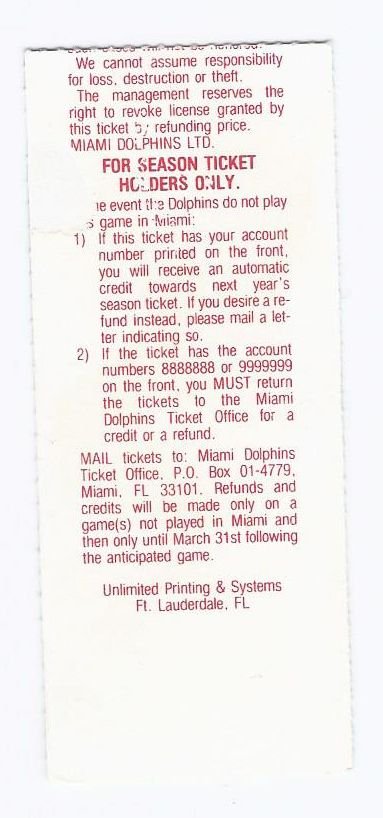 1985 AFC Championship Ticket Stub New England Patriots @ Miami Dolphins. This Ticket is in VERY good Condition no rips tears writing as you can see in the pictures nice RARE piece of Football History if you have any further questions please dont hesitate to askkk!