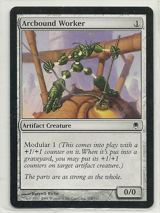 more Great cards @ www.everythingcollectibles.biz For Sale is a MTG Magic The Gathering Darksteel Arcbound Worker Card Common in Very Good to NrMt Condition as pictured. all single cards are shipped in Penny Sleeves and top loaders. all orders ship with delivery confirmation as well. we usually ship within 2 days of receiving an order. Shipping is a Flat $2 no matter how many cards you buy 1 or 1000 its sti