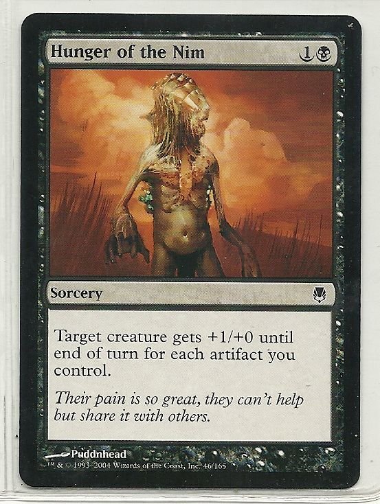 more Great cards @ www.everythingcollectibles.biz For Sale is a MTG Magic The Gathering Darksteel Hunger of the Nim Card Common in Very Good to NrMt Condition as pictured. all single cards are shipped in Penny Sleeves and top loaders. all orders ship with delivery confirmation as well. we usually ship within 2 days of receiving an order. Shipping is a Flat $2 no matter how many cards you buy 1 or 1000 its sti