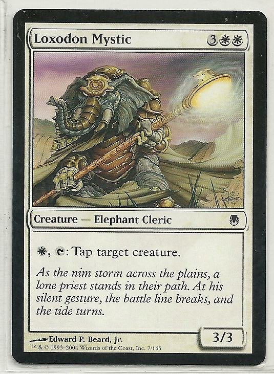 more Great cards @ www.everythingcollectibles.biz For Sale is a MTG Magic The Gathering Darksteel Loxodon Mystic Card Common in Very Good to NrMt Condition as pictured. all single cards are shipped in Penny Sleeves and top loaders. all orders ship with delivery confirmation as well. we usually ship within 2 days of receiving an order. Shipping is a Flat $2 no matter how many cards you buy 1 or 1000 its sti