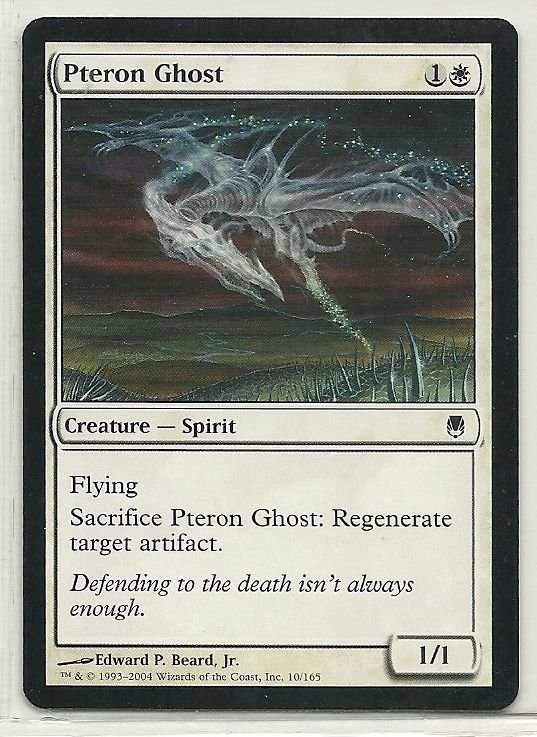 more Great cards @ www.everythingcollectibles.biz For Sale is a MTG Magic The Gathering Darksteel Pteron Ghost Card Common in Very Good to NrMt Condition as pictured. all single cards are shipped in Penny Sleeves and top loaders. all orders ship with delivery confirmation as well. we usually ship within 2 days of receiving an order. Shipping is a Flat $2 no matter how many cards you buy 1 or 1000 its sti