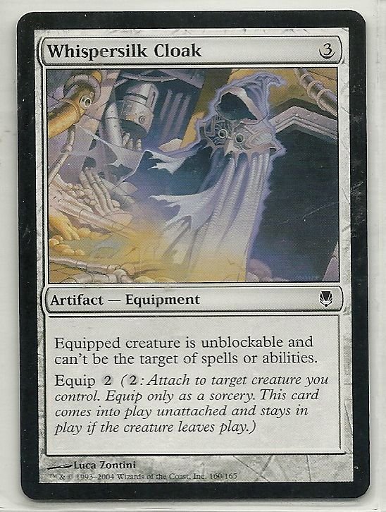 more Great cards @ www.everythingcollectibles.biz For Sale is a MTG Magic The Gathering Darksteel Whispersilk Cloak Card Common in Very Good to NrMt Condition as pictured. all single cards are shipped in Penny Sleeves and top loaders. all orders ship with delivery confirmation as well. we usually ship within 2 days of receiving an order. Shipping is a Flat $2 no matter how many cards you buy 1 or 1000 its sti