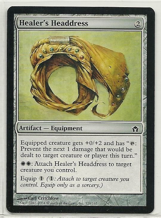 more Great cards @ www.everythingcollectibles.biz For Sale is a MTG Magic The Gathering Fifth Dawn Healer's Headdress Card Common in Very Good to NrMt Condition as pictured. all single cards are shipped in Penny Sleeves and top loaders. all orders ship with delivery confirmation as well. we usually ship within 2 days of receiving an order. Shipping is a Flat $2 no matter how many cards you buy 1 or 1000 its sti