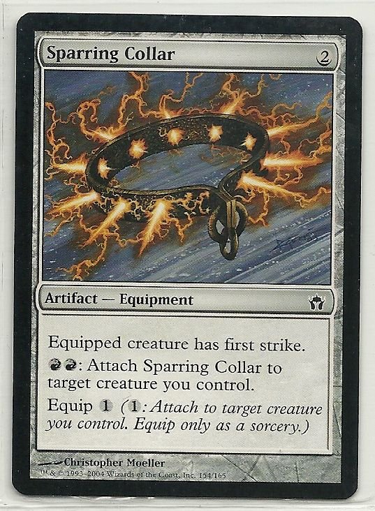 more Great cards @ www.everythingcollectibles.biz For Sale is a MTG Magic The Gathering Fifth Dawn Sparring Collar Card Common in Very Good to NrMt Condition as pictured. all single cards are shipped in Penny Sleeves and top loaders. all orders ship with delivery confirmation as well. we usually ship within 2 days of receiving an order. Shipping is a Flat $2 no matter how many cards you buy 1 or 1000 its sti
