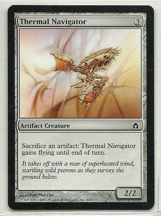 more Great cards @ www.everythingcollectibles.biz For Sale is a MTG Magic The Gathering Fifth Dawn Thermal Navigator Card Common in Very Good to NrMt Condition as pictured. all single cards are shipped in Penny Sleeves and top loaders. all orders ship with delivery confirmation as well. we usually ship within 2 days of receiving an order. Shipping is a Flat $2 no matter how many cards you buy 1 or 1000 its sti