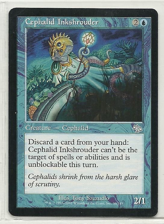 more Great cards @ www.everythingcollectibles.biz For Sale is a MTG Magic The Gathering Judgment Cephalid Inkshrouder Card Uncommon in Very Good to NrMt Condition as pictured. all single cards are shipped in Penny Sleeves and top loaders. all orders ship with delivery confirmation as well. we usually ship within 2 days of receiving an order. Shipping is a Flat $2 no matter how many cards you buy 1 or 1000 its sti