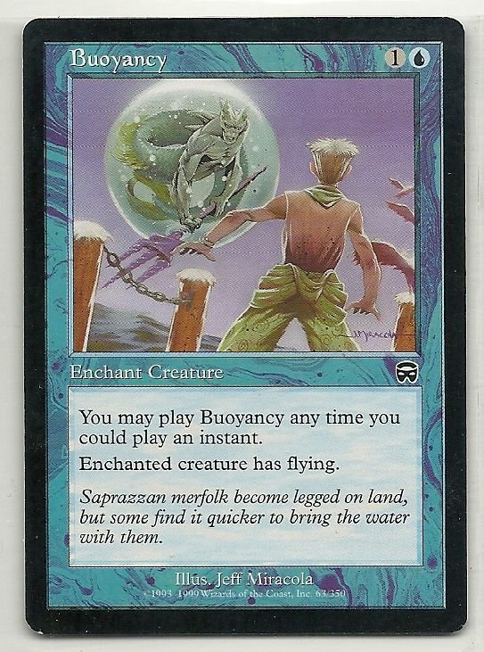 more Great cards @ www.everythingcollectibles.biz For Sale is a MTG Magic The Gathering Mercadian Masques Buoyancy Card Common in Very Good to NrMt Condition as pictured. all single cards are shipped in Penny Sleeves and top loaders. all orders ship with delivery confirmation as well. we usually ship within 2 days of receiving an order. Shipping is a Flat $2 no matter how many cards you buy 1 or 1000 its