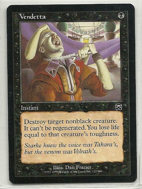 more Great cards @ www.everythingcollectibles.biz For Sale is a MTG Magic The Gathering Mercadian Masques Vendetta Card Common in Very Good to NrMt Condition as pictured. all single cards are shipped in Penny Sleeves and top loaders.