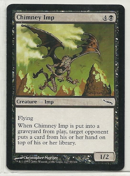 more Great cards @ www.everythingcollectibles.biz For Sale is a MTG Magic The Gathering Mirrodin Chimney Imp Card Common in Very Good to NrMt Condition as pictured. all single cards are shipped in Penny Sleeves and top loaders.