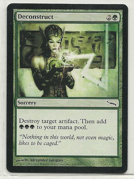 more Great cards @ www.everythingcollectibles.biz For Sale is a MTG Magic The Gathering Mirrodin Deconstruct Card Common in Very Good to NrMt Condition as pictured. all single cards are shipped in Penny Sleeves and top loaders.
