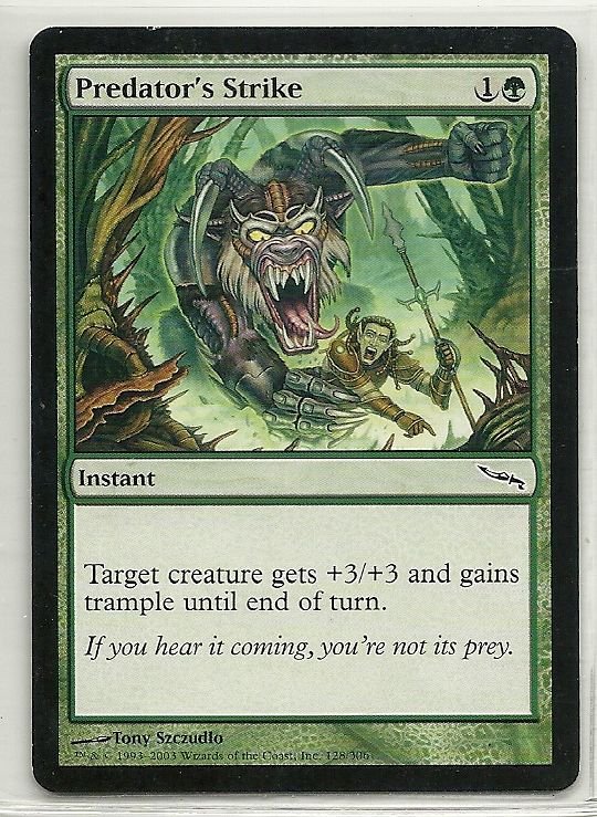 more Great cards @ www.everythingcollectibles.biz For Sale is a MTG Magic The Gathering Mirrodin Predator's Strike Card Common in Very Good to NrMt Condition as pictured. all single cards are shipped in Penny Sleeves and top loaders.
