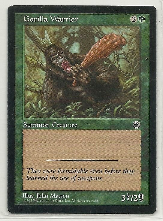 more Great cards @ www.everythingcollectibles.biz For Sale is a MTG Magic The Gathering Portal Gorilla Warrior Card Common in Very Good to NrMt Condition as pictured. all single cards are shipped in Penny Sleeves and top loaders.