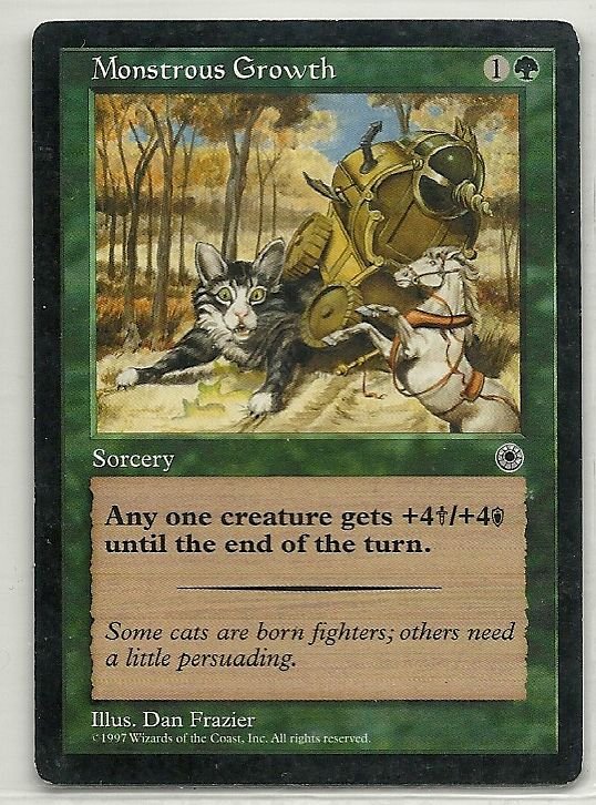 more Great cards @ www.everythingcollectibles.biz For Sale is a MTG Magic The Gathering Portal Monstrous Growth Card Common in Very Good to NrMt Condition as pictured. all single cards are shipped in Penny Sleeves and top loaders.