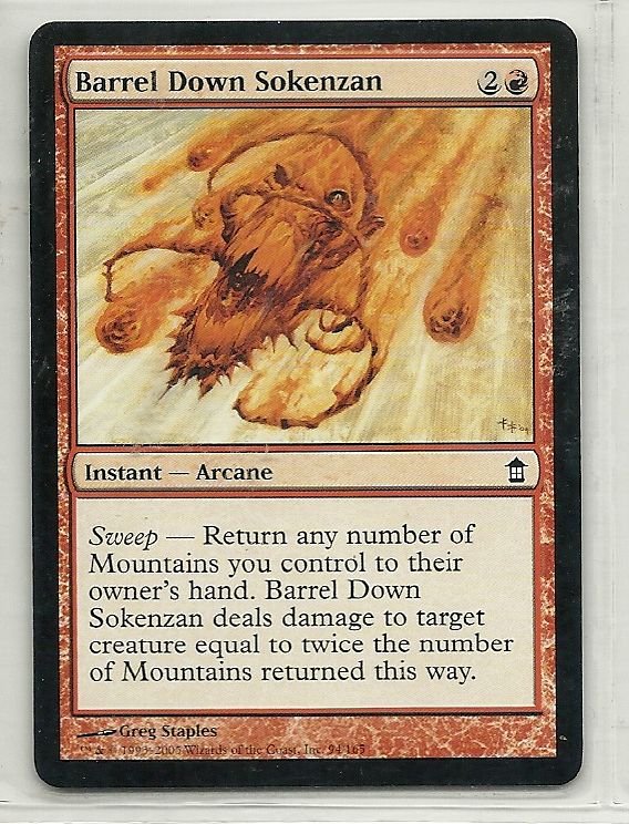 more Great cards @ www.everythingcollectibles.biz For Sale is a MTG Magic The Gathering Saviors of Kamigawa Barrel Down Sokenzan Card Common in Very Good to NrMt Condition as pictured. all single cards are shipped in Penny Sleeves and top loaders.