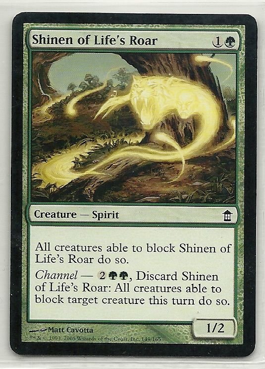 more Great cards @ www.everythingcollectibles.biz For Sale is a MTG Magic The Gathering Saviors of Kamigawa Shinen of Life's Roar Card Common in Very Good to NrMt Condition as pictured. all single cards are shipped in Penny Sleeves and top loaders. all orders ship with delivery confirmation as well. we usually ship within 2 days of