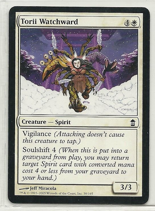 more Great cards @ www.everythingcollectibles.biz For Sale is a MTG Magic The Gathering Saviors of Kamigawa Torii Watchward Card Common in Very Good to NrMt Condition as pictured. all single cards are shipped in Penny Sleeves and top loaders. all orders ship with delivery confirmation as well. we usually ship within 2 days of