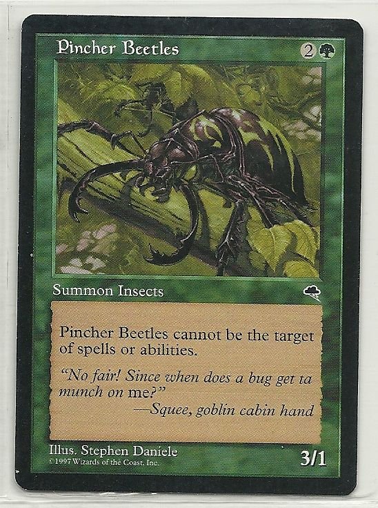 more Great cards @ www.everythingcollectibles.biz For Sale is a MTG Magic The Gathering Tempest Pincher Beetles Card Common in Very Good to NrMt Condition as pictured. all single cards are shipped in Penny Sleeves and top loaders. all orders ship with delivery confirmation as well. we usually ship within 2 days of