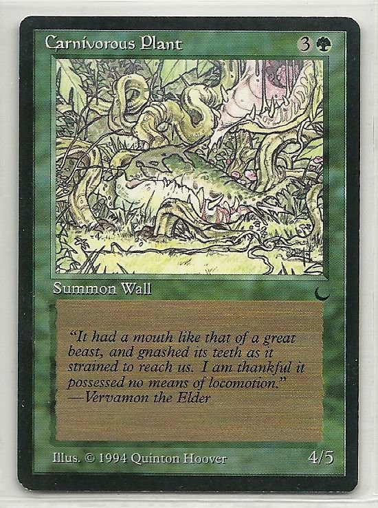 more Great cards @ www.everythingcollectibles.biz For Sale is a MTG Magic The Gathering The Dark Carnivorous Plant Card Common in Very Good to NrMt Condition as pictured. all single cards are shipped in Penny Sleeves and top loaders. all orders ship with delivery confirmation as well. we usually ship within 2 days o